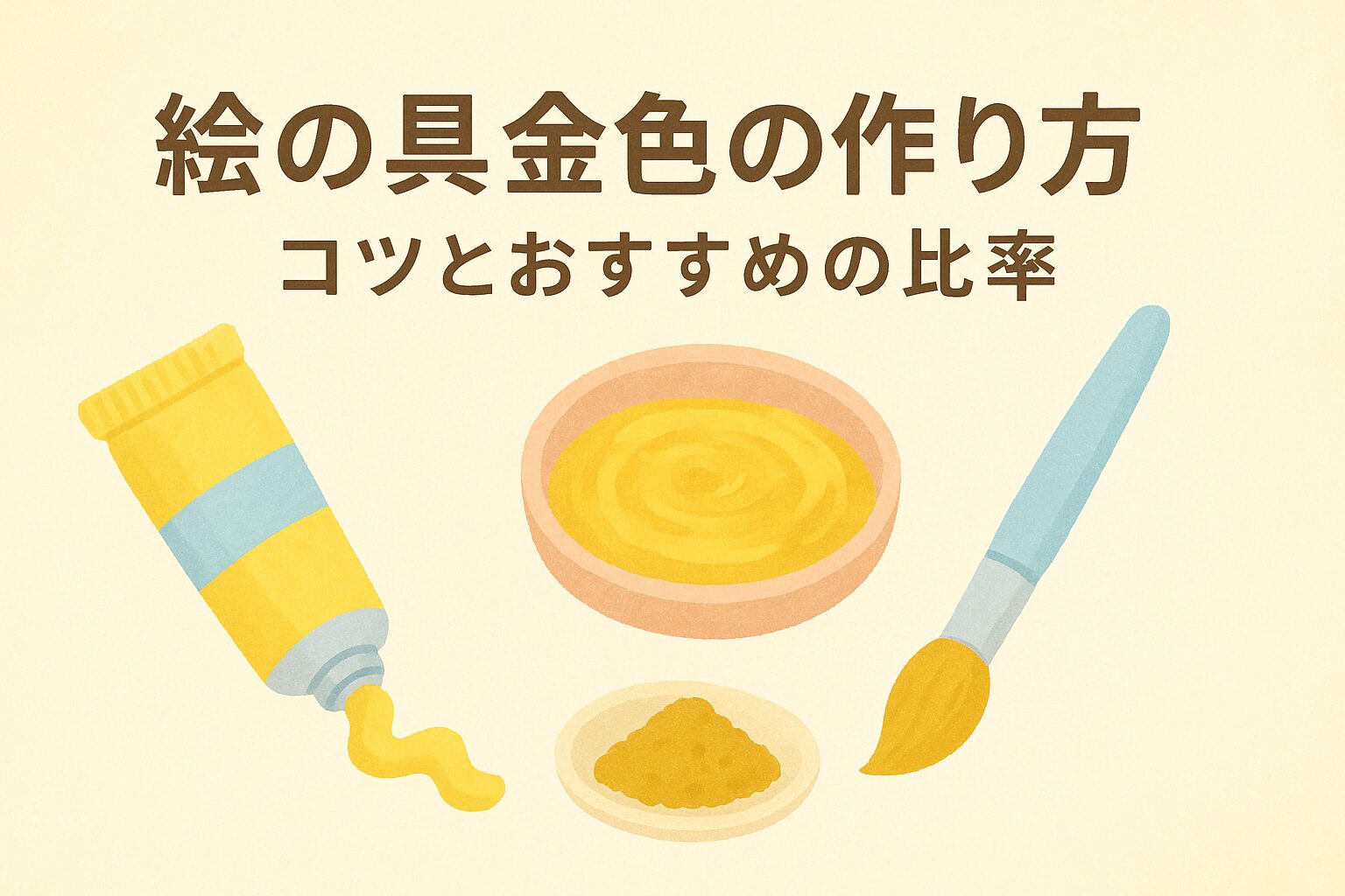 絵の具で金色を作るときのポイントは、黄色をベースに、そこへ少しの赤と黒を混ぜることなんです。
